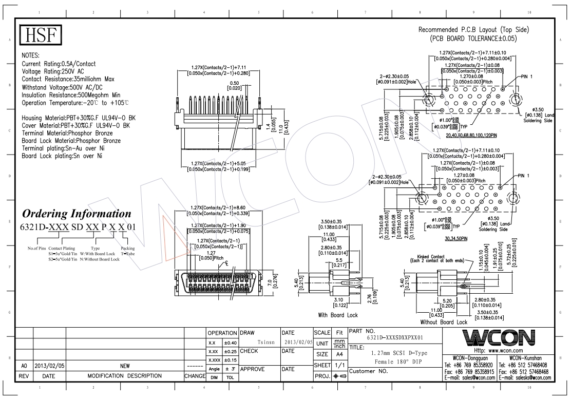 1.27mm SCSI CEN Female Connector
