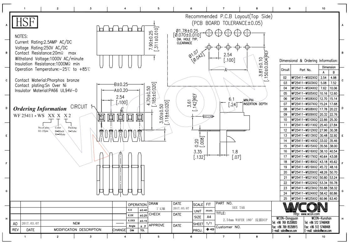 新品 wafer 2.54间距 180度 带卡勾 白色 反插DIP