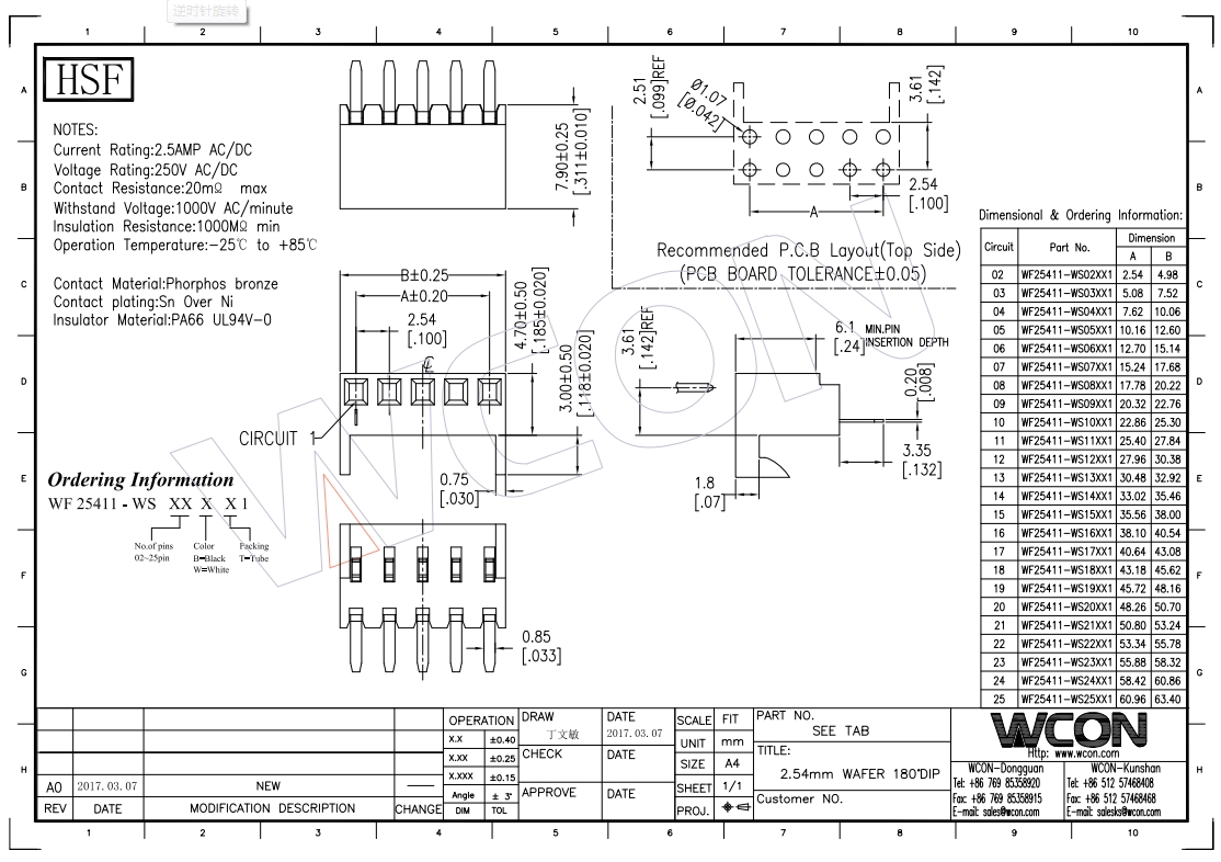 新品 2.54间距 wafer 180直针带卡勾 白色