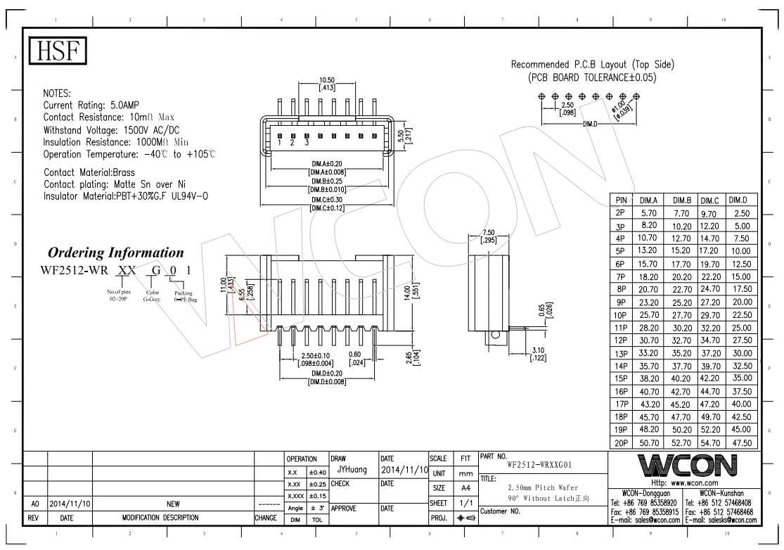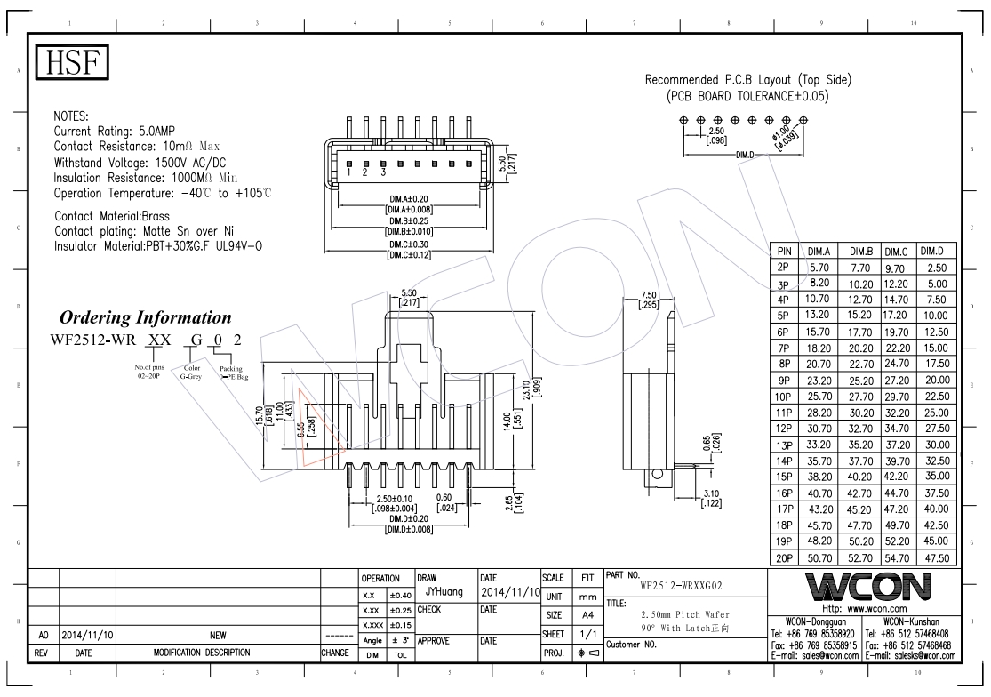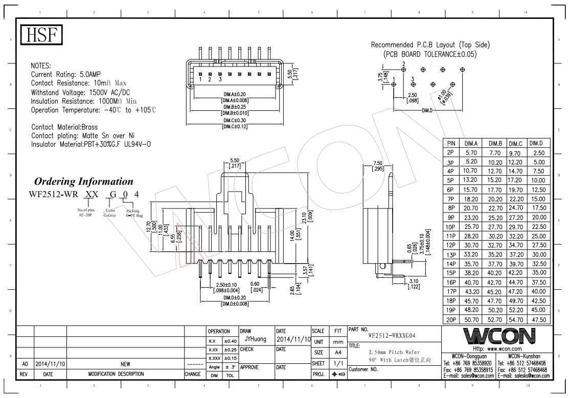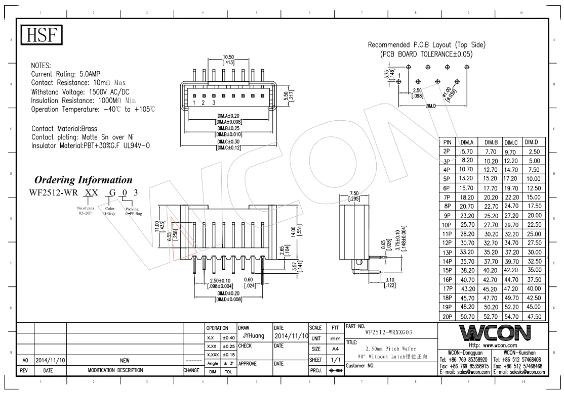 2.5间距 90度弯针wafer 带扣/无扣 PBT灰色