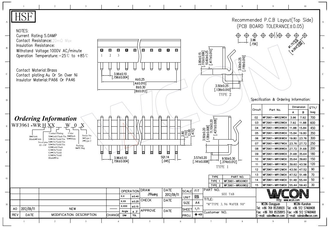 3.96MM 3P 90°插板 Wafer 板端连接器 供应