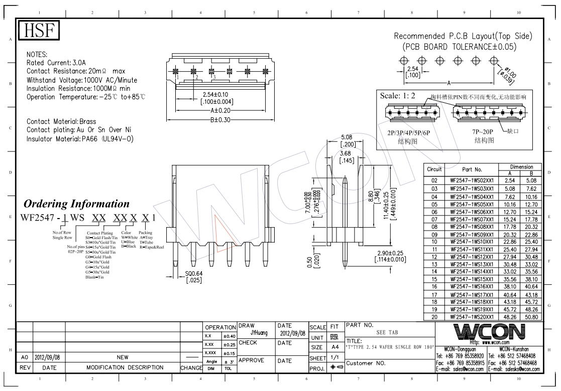 2.54MM 单排 8P 180° DIP 插板型 板端连接器