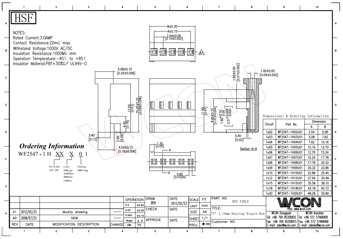 维峰 2.54MM 单排 蓝色 配线型Housing