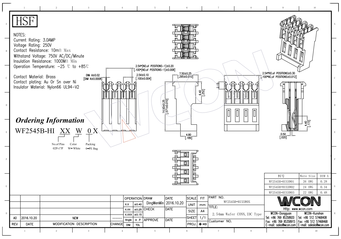 2.54MM 刺破式 Housing Wafer 双边出线带防呆 批发