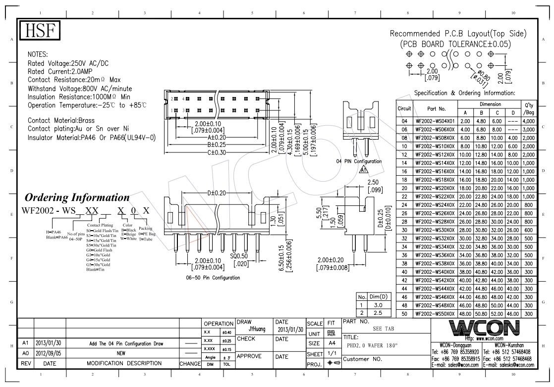 电子产品 2.0MM 90° DIP