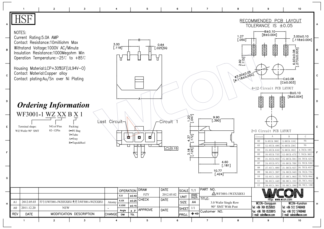 3.0MM 90度贴片 LCP料黑色 线对板连接器
