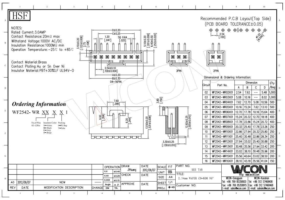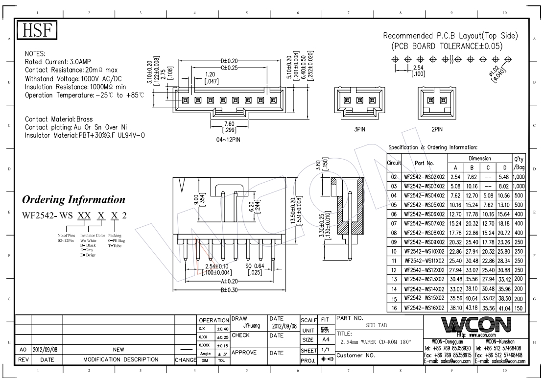 2.54 CD-ROM 2P 不垫高 H=12.0 端子打卡点 PBT黑色 镀普金