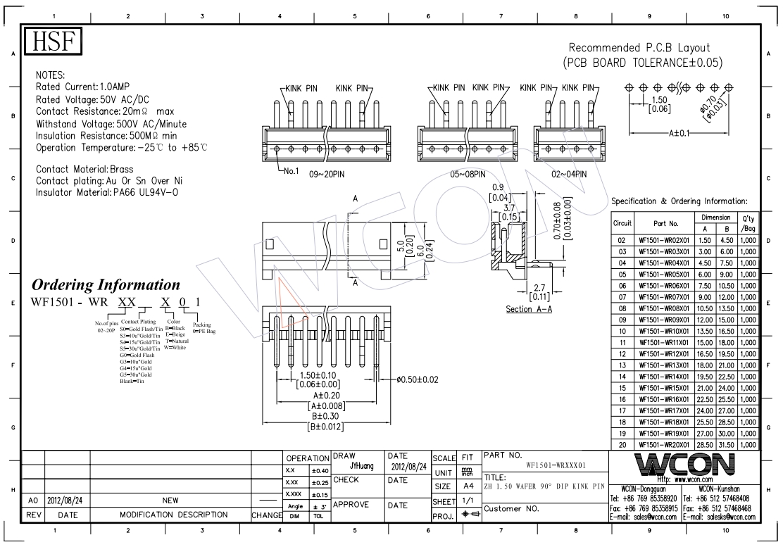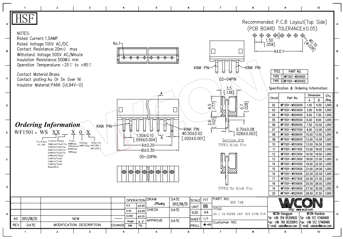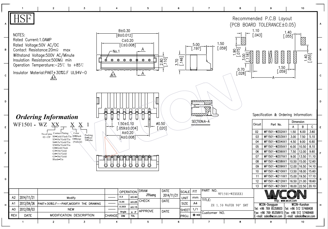 ZH1.50MM 2P 90度 L=9.0 1/2P打K脚 PA66贝吉色 镀锡