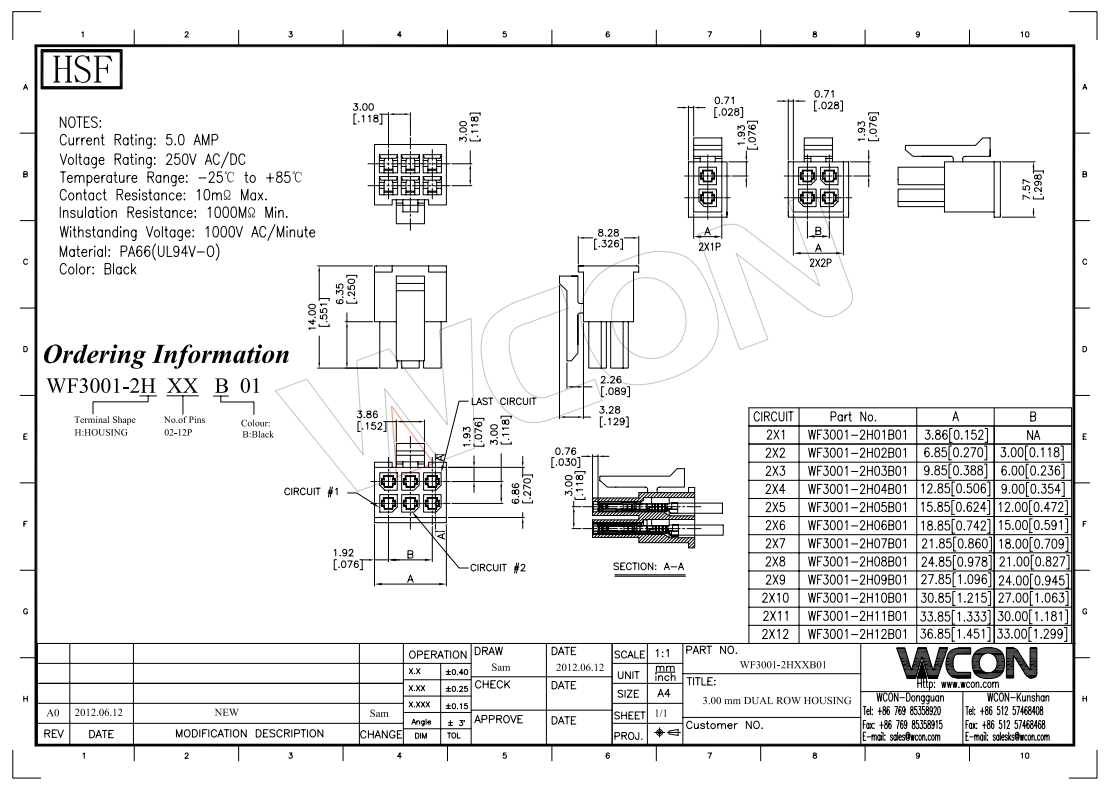UL认证 3.0MM 双排 2*3P 配线型Housing Wafer