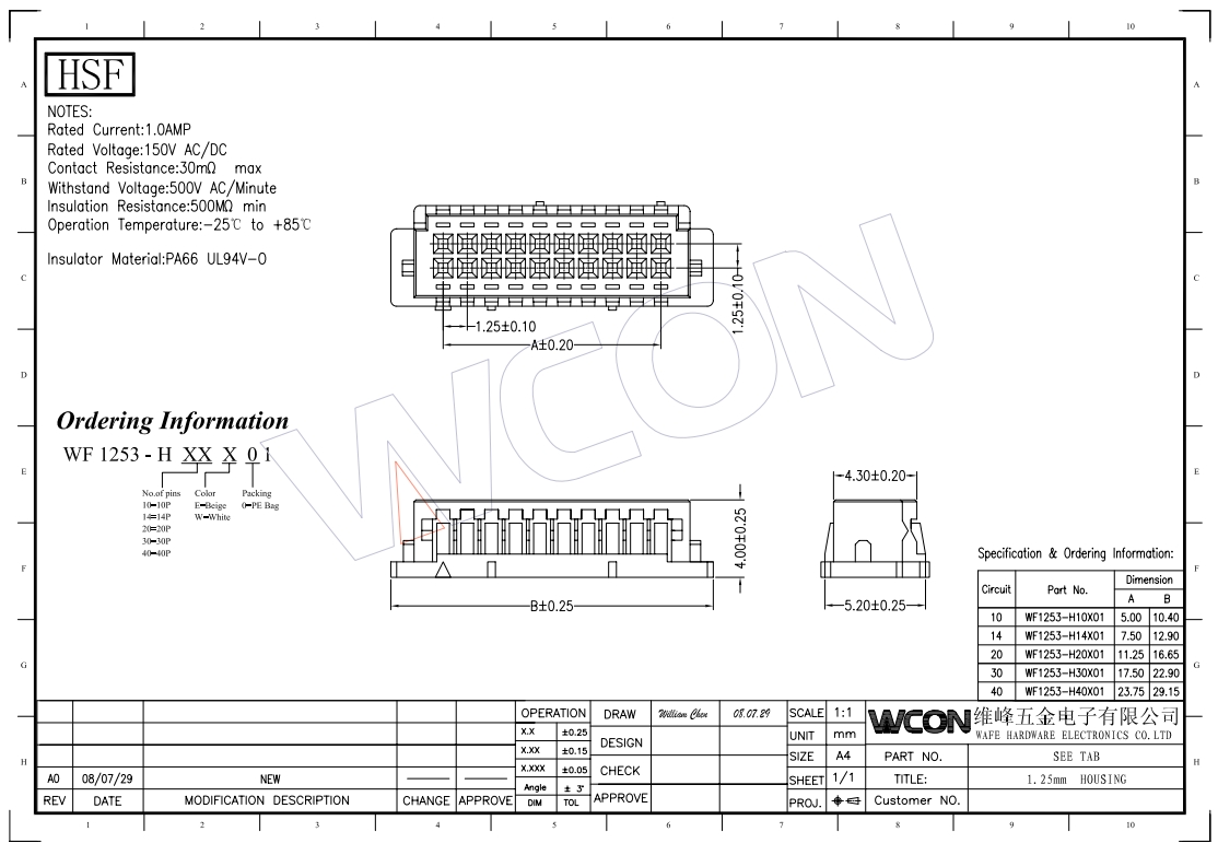 1.25MM 配线型Housing Wafer