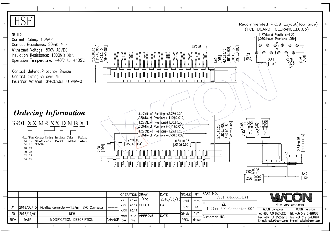 1.27mm SPC 连接器 10P 90度DIP型 LCP料黑色 镀雾锡 环保