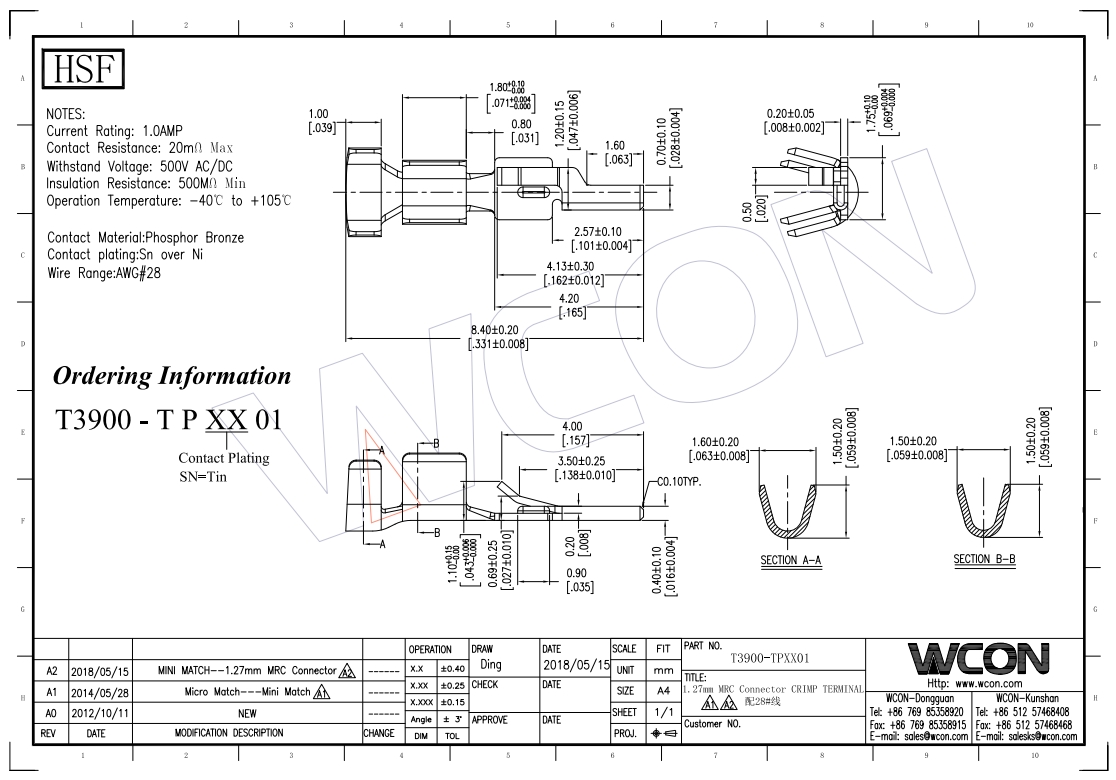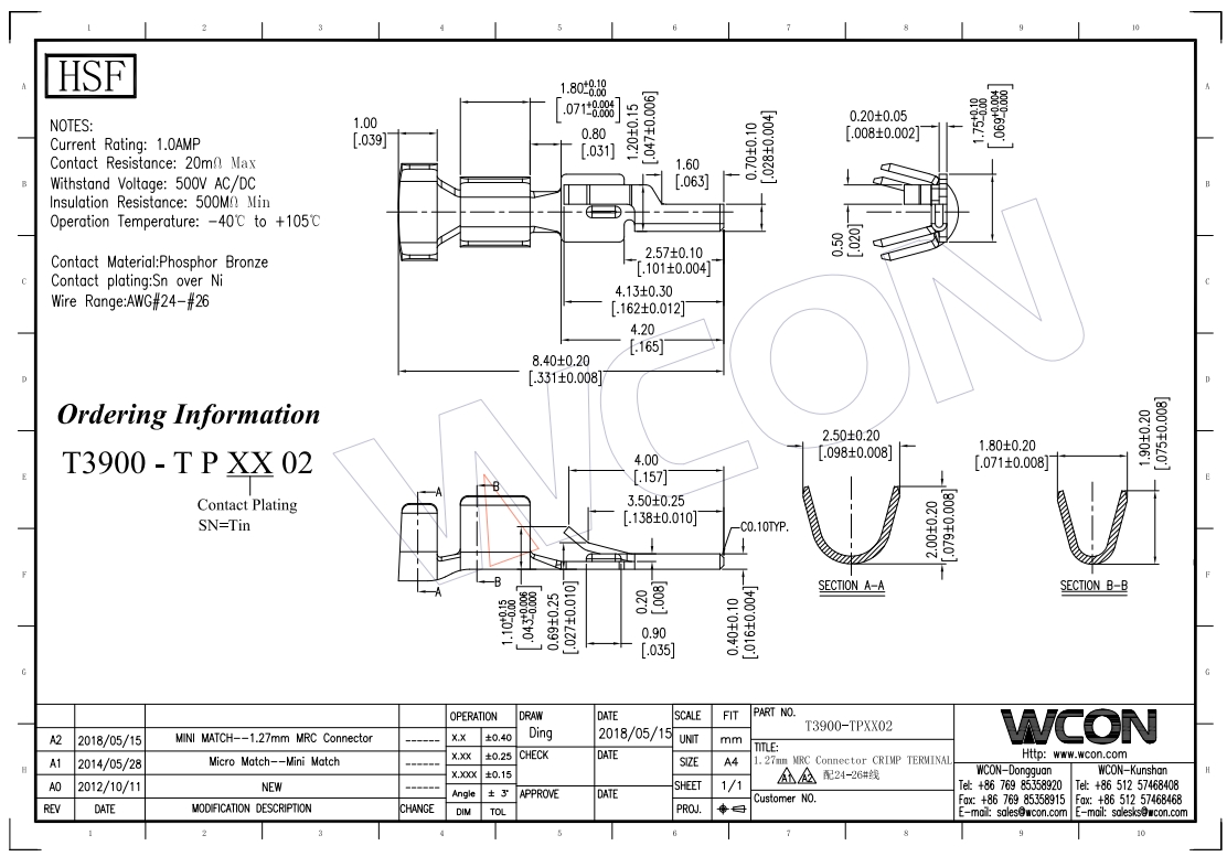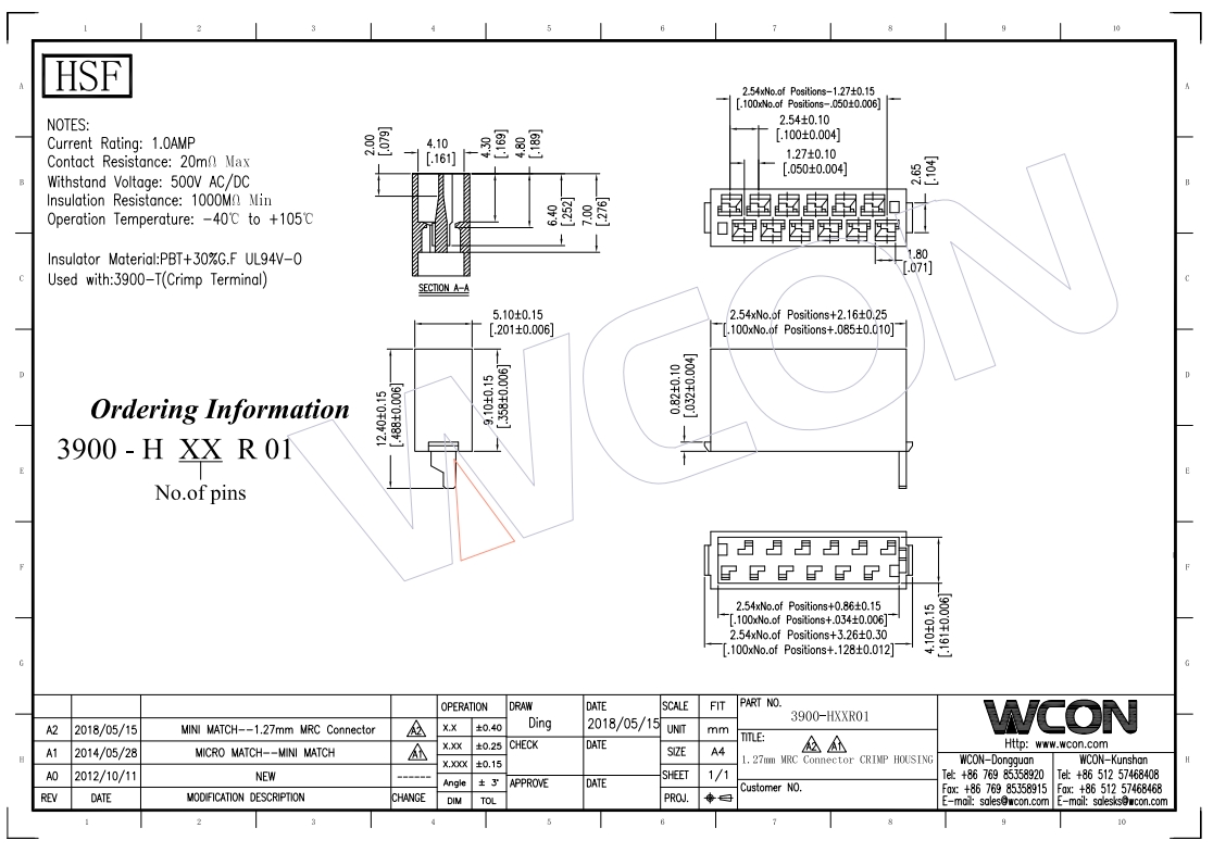 PBT红色 1.27mm MRC Connector 8P Housing塑胶