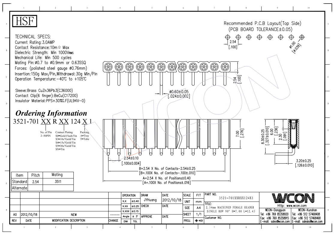 2.54MM 单排 H=7.0 90度弯插 圆孔排母