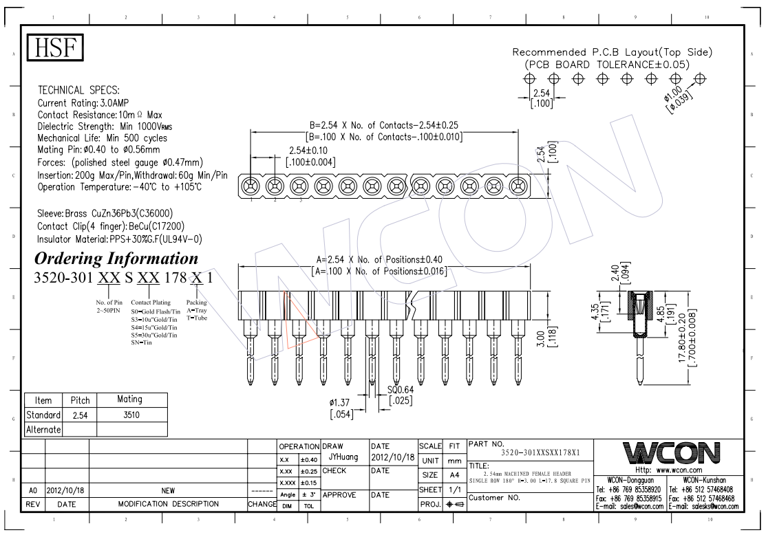 2.54MM 单排 ......