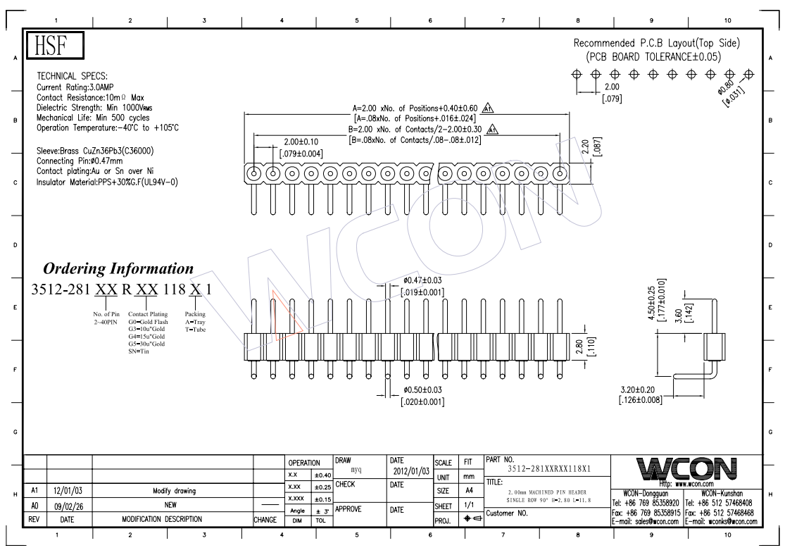 2.0MM 单排 H=2.8 弯插型 圆型排针