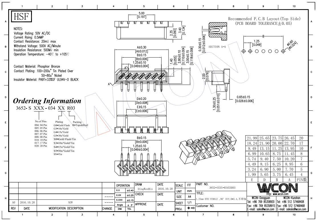 1.25间距 单排 母头 90度直针 H=3.4 ROHS
