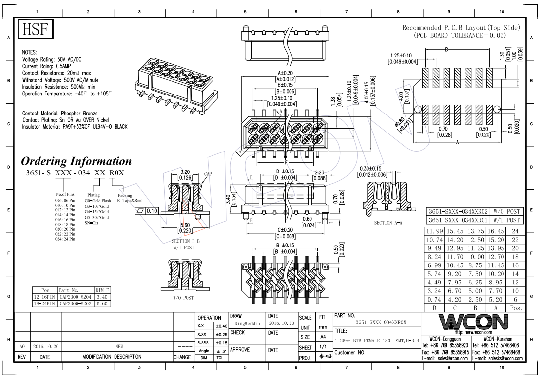 1.25间距 板对板 双排 母头 180度贴片 H=3.4