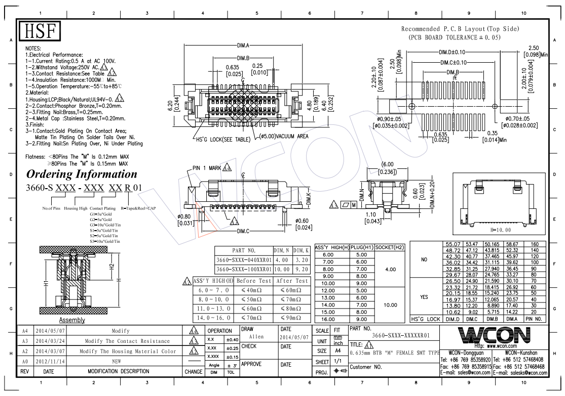 UL认证 0.635MM 母座 Board To Board 板对板 连接器