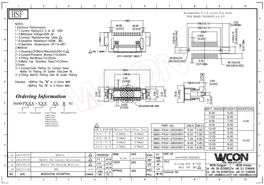 UL认证 0.635间距 公座 Board To Board 板对板 连接器 供应商
