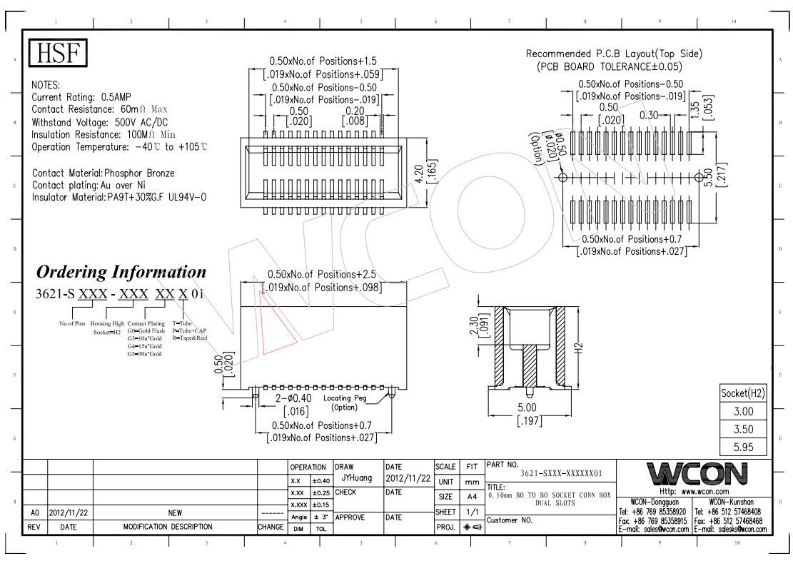 厂家订制 0.5MM 母座 双槽BOX结构 Board To Board