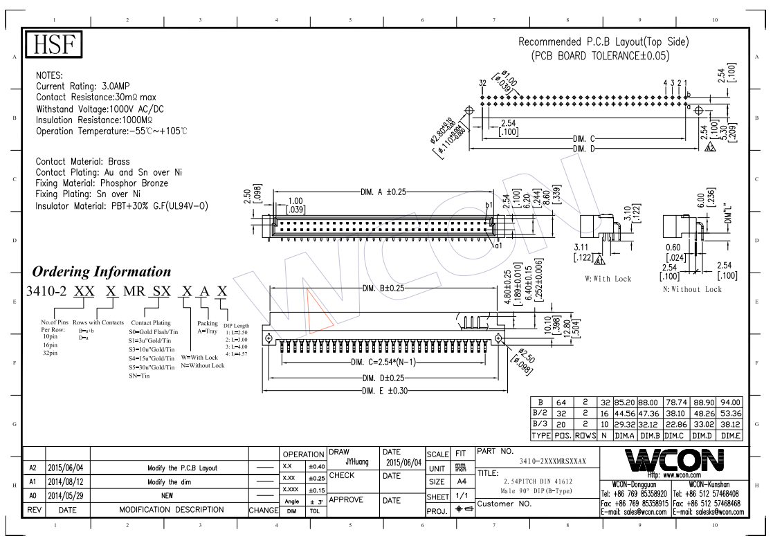 2.54间距 90度弯插型 公座 2-16P DIN41612 板对板连接器