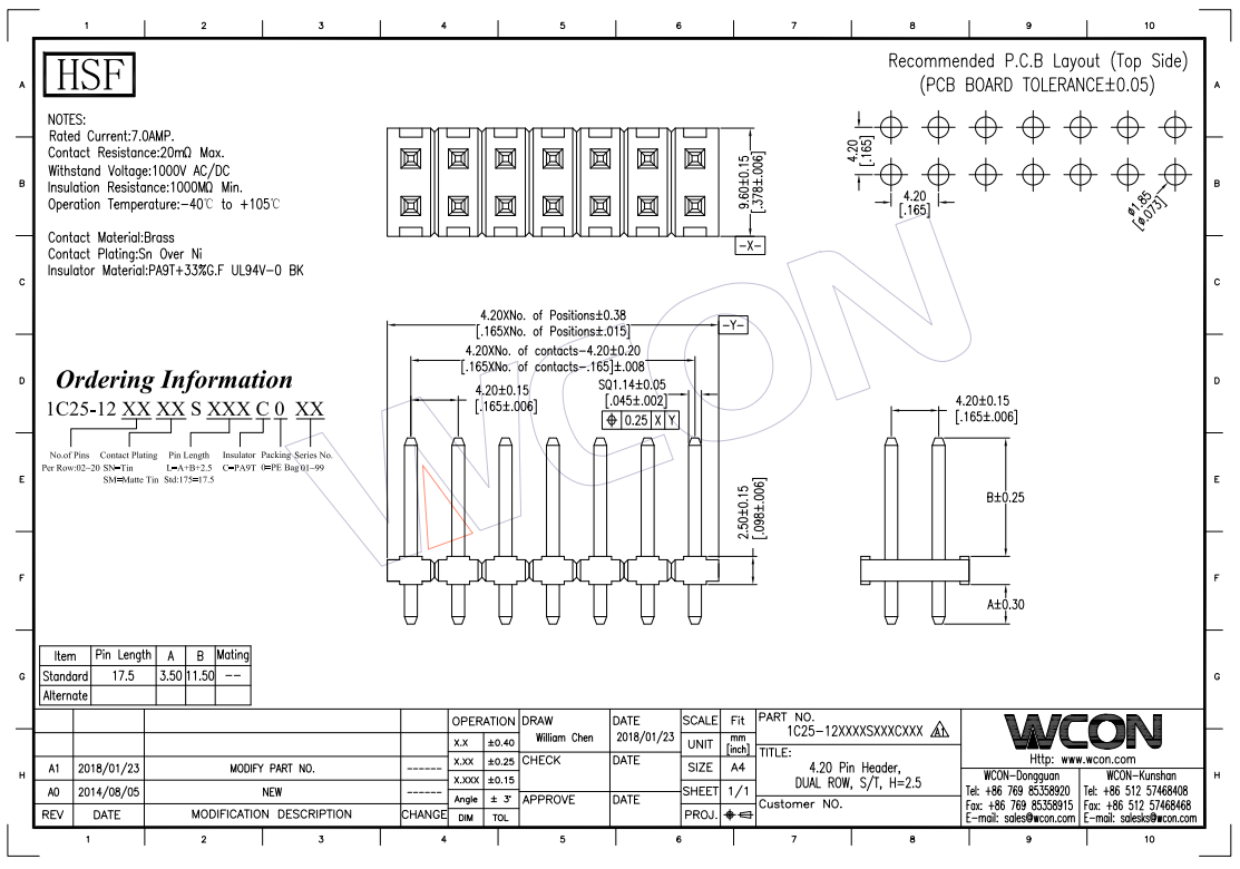 WCON 4.2MM 单层双排 180°DIP 排针 生产