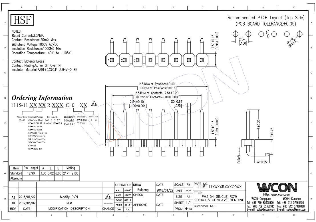 2.54MM 单排 ......