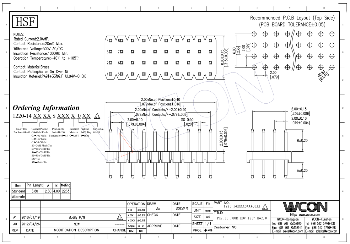 2.0MM 单层四排 180°DIP 排针 生产