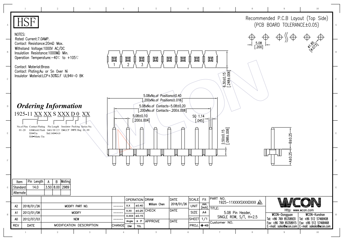 5.08mm 180度直针 LCP 黑色 H=2.5 镀锡排针连接器
