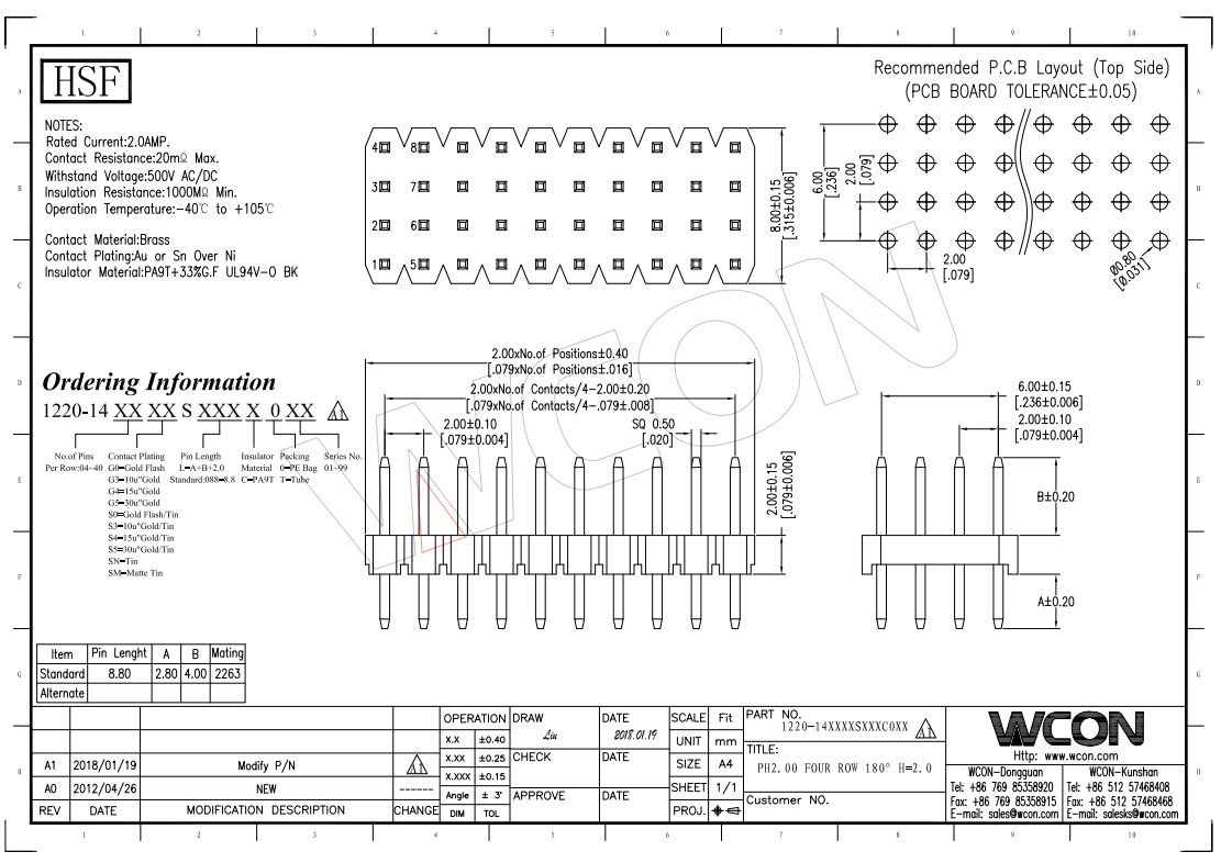 2.0MM 单层四排 散镀全金 180°DIP 排针