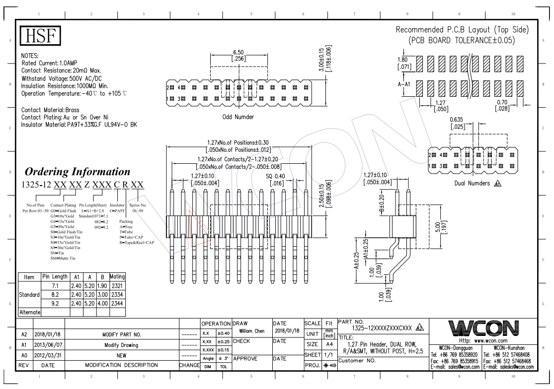 1.27MM 单层双排 90度贴片 卧贴型 排针