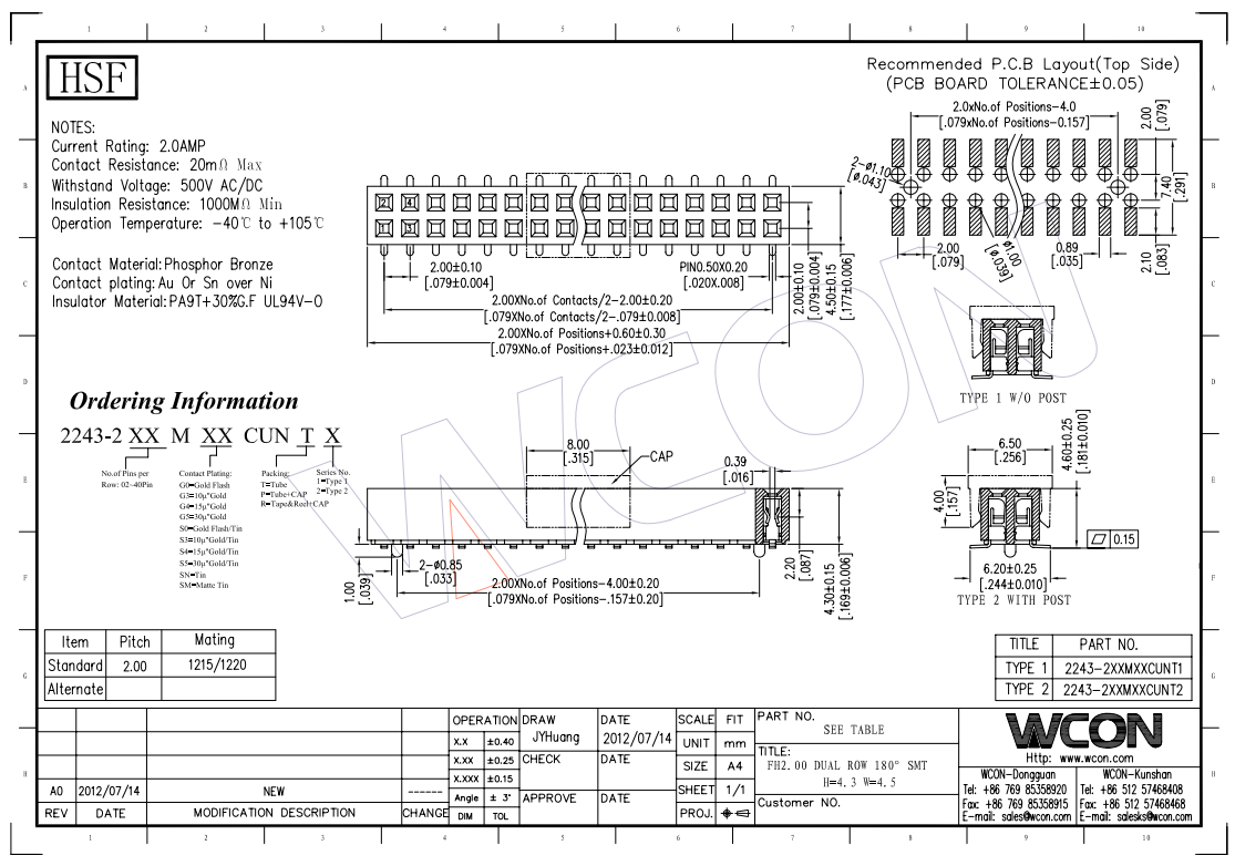 2.0mm 排母 SMT PA9T料黑色 H=4.3 连接器 生产商
