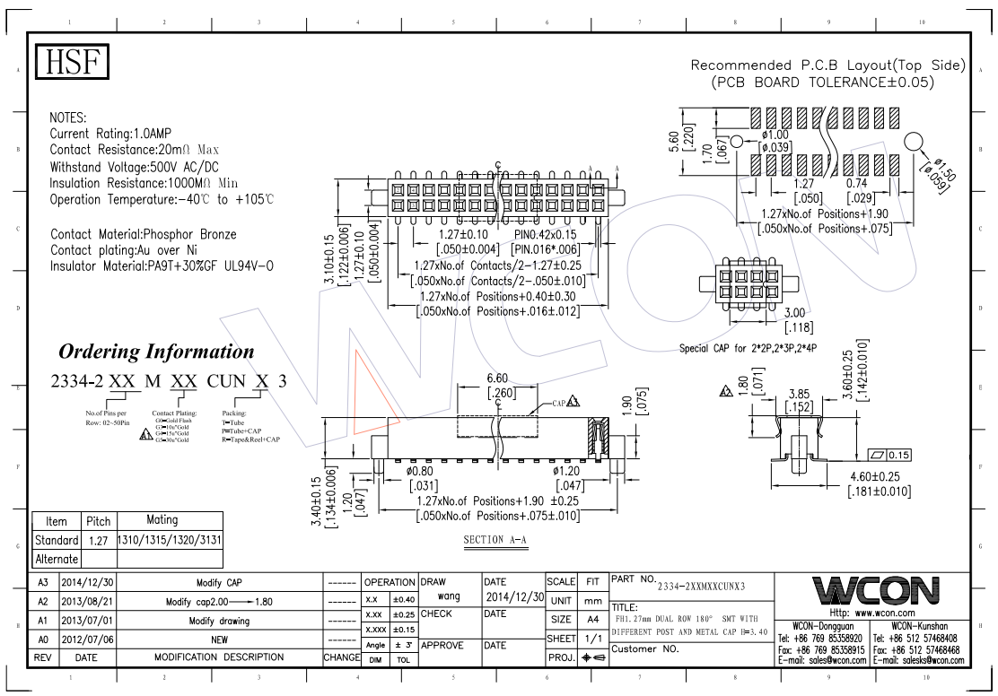 1.27间距 双排 2*7P 带大小柱 双排 180°SMT 排母