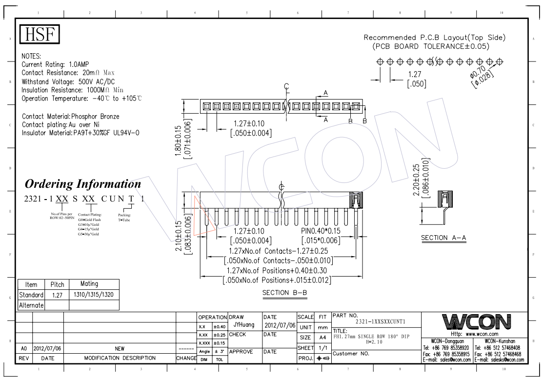 1.27MM 单排 180°DIP 排母 供应