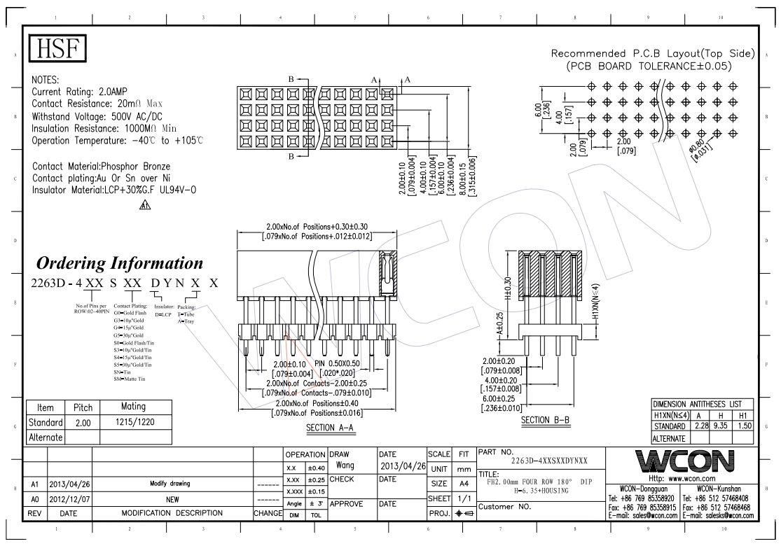 2.0间距 4*30P 180° 直插,加高一层塑胶 排母连接器