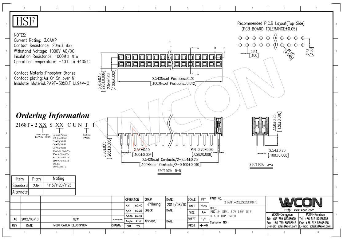 UL认证 2.54MM H=6.8MM 双排 180°DIP 排母