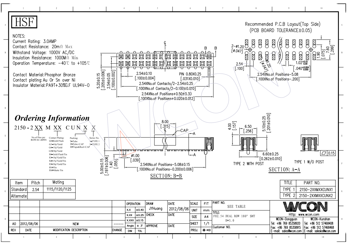 2.54MM H=5.0MM 双排 180° SMT 排母 直销