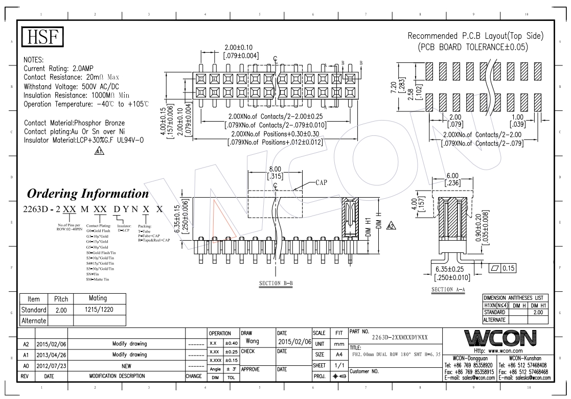 2.0MM 双排加塑胶 180°SMT 排母 生产