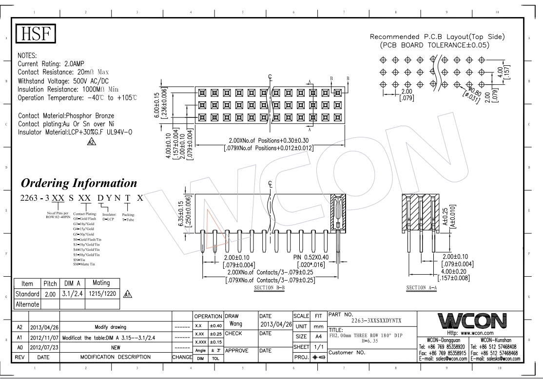 2.0MM H=6.3MM 三排 180°DIP 排母 生产