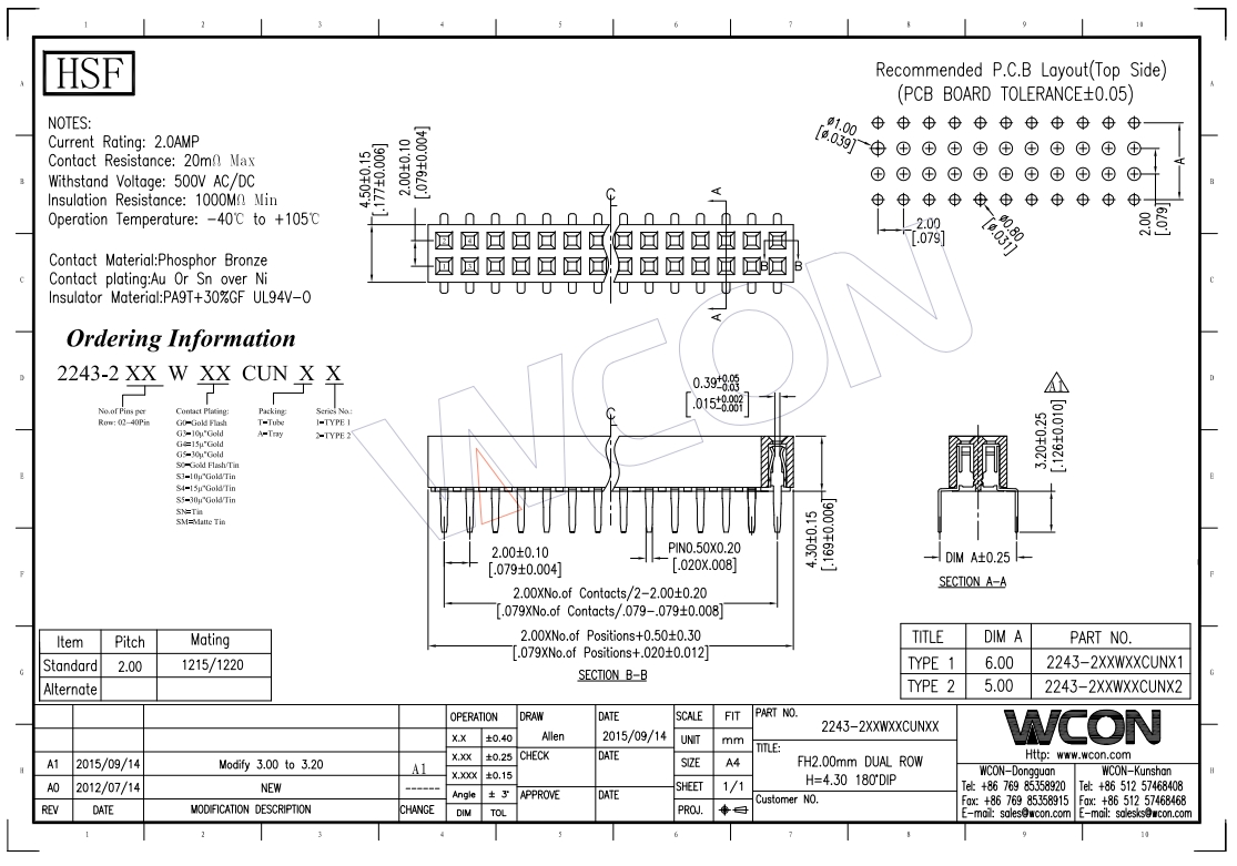 UL认证 2.0MM H=4.3MM 双排 蜈蚣脚 排母