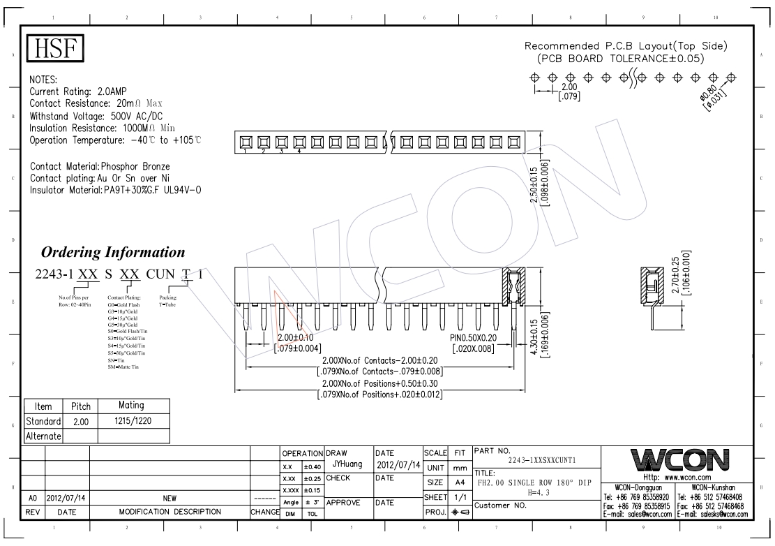 2.0MM H=4.3MM 单排 180°DIP 排母 厂家