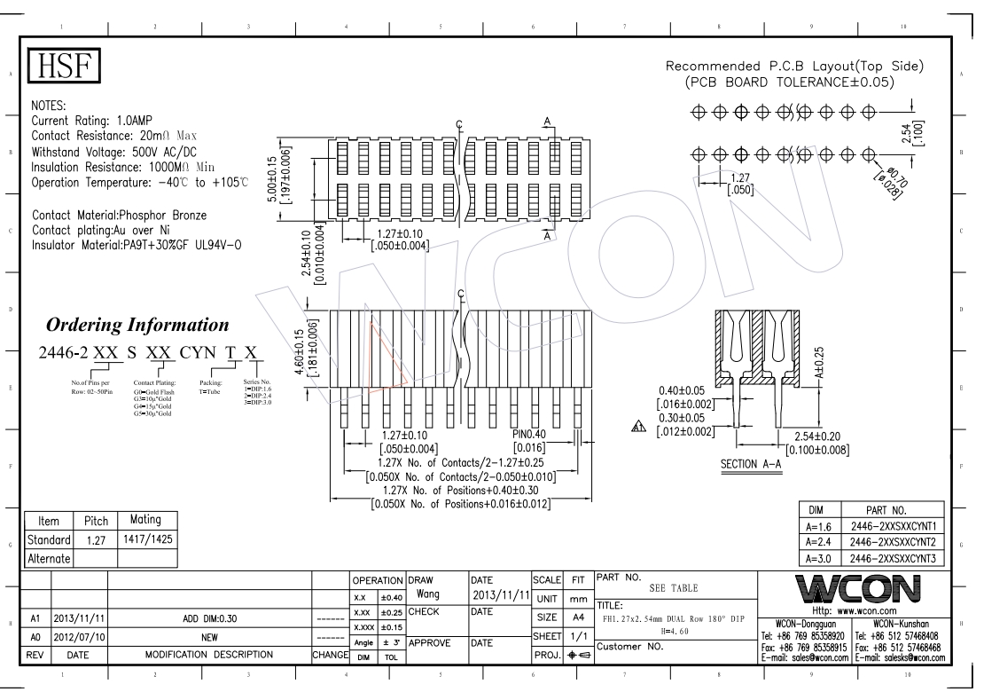 1.27*2.54MM H=4.6MM 双排 180°DIP 排母