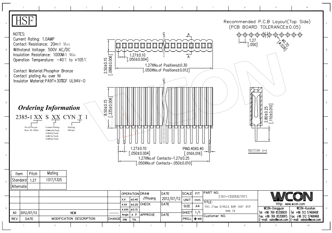 防火 1.27MM H=8.5MM 单排 排母 厂家